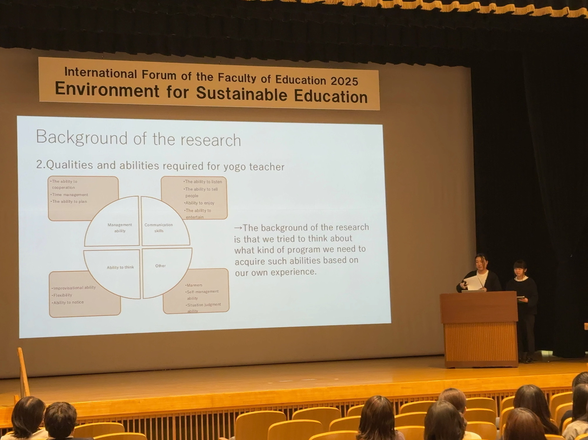 その後、教育学部の教員および学部生による英語でのプレゼンテーションが行われ、活発な質疑応答が展開されました。 「持続可能な教育環境」をテーマに、教員と学生が英語で意見を交わしながら議論する貴重な機会となり、教育の未来を考える充実した時間となりました。