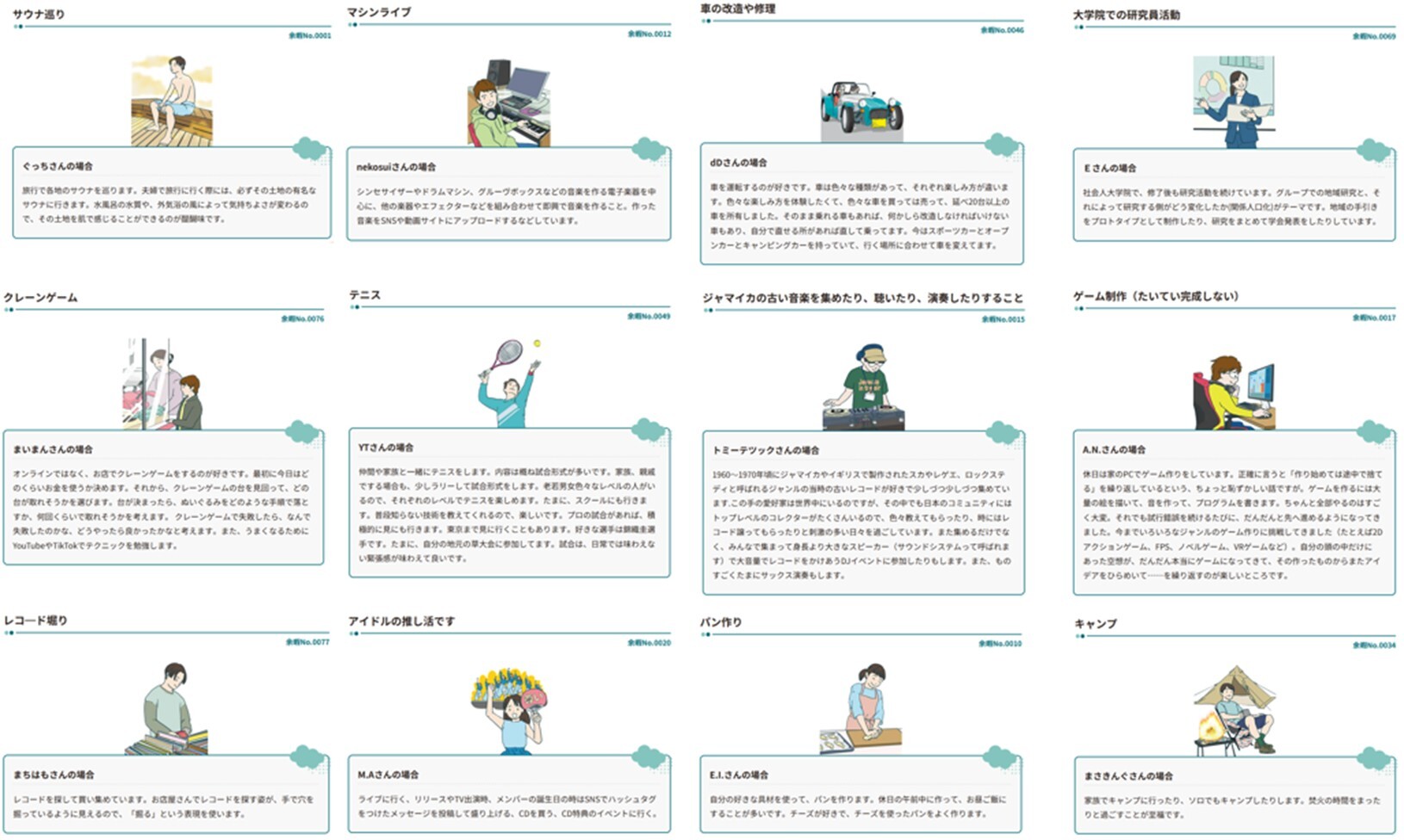 こうした問題意識のもと、2024年7月より静岡大学教育学部塩田真吾研究室とヤマハ新価値グループでは、余暇に関する共同研究をスタートし、「人生を楽しむための余暇図鑑」を開発しました。