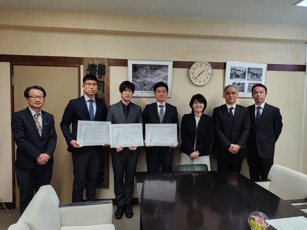 受賞された先生は、附属特別支援学校 岩佐恭平教諭、附属静岡中学校 若林卓教諭、附属浜松中学校 中澤祐介教諭、附属島田中学校 美澤将史教諭です。中澤教諭は4年連続の受賞です。表彰者の今後の活躍が期待されます。
